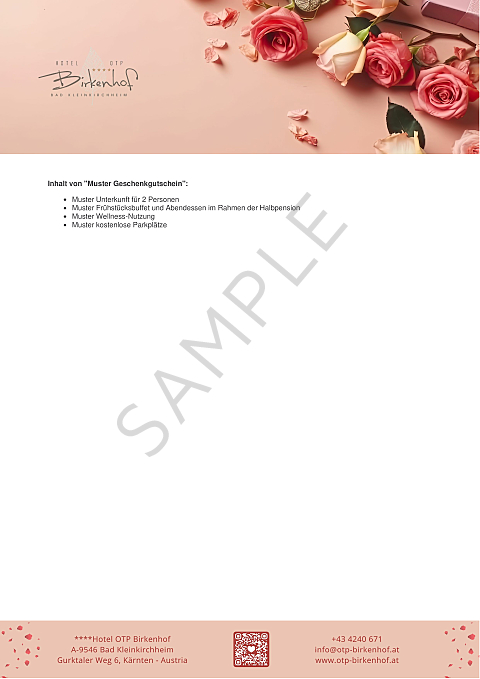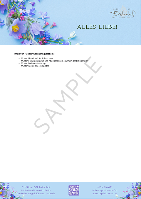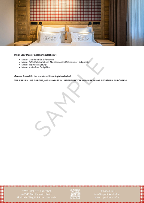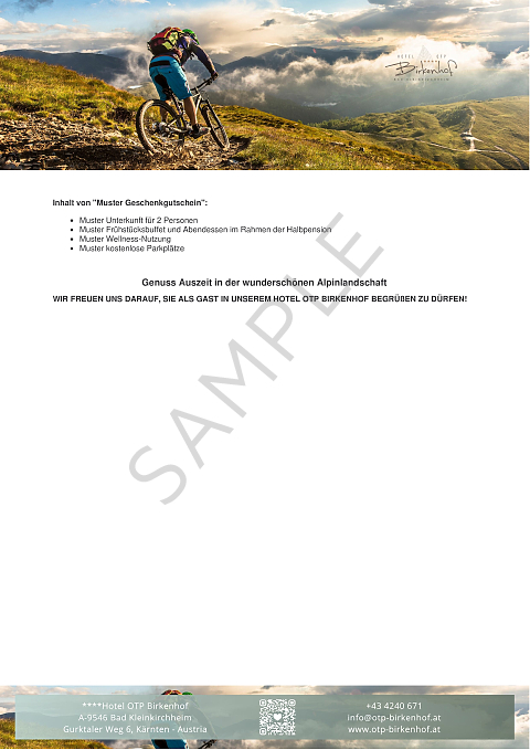 - Der Wertgutschein ist auf Leistungen in unserem Hotel OTP Birkenhof einlösbar!