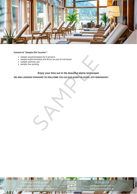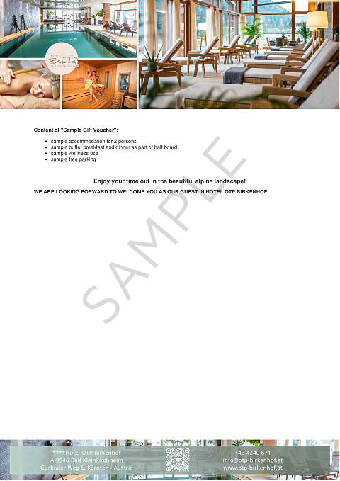 - unlimited free use of Birkenhof SPA;
