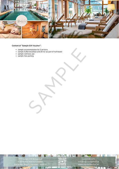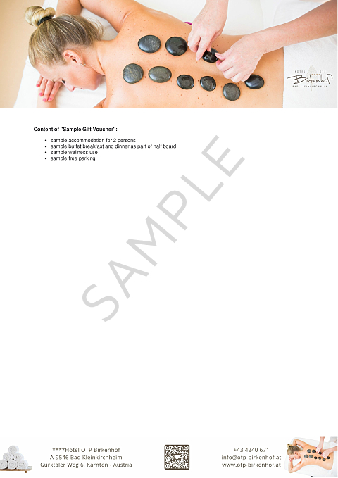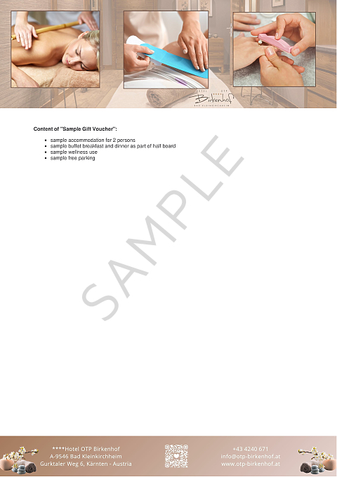 - Our gift voucher can be used freely for all services of the Hotel OTP Birkenhof****, according to the selected value.