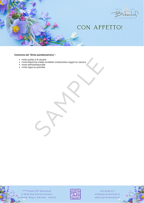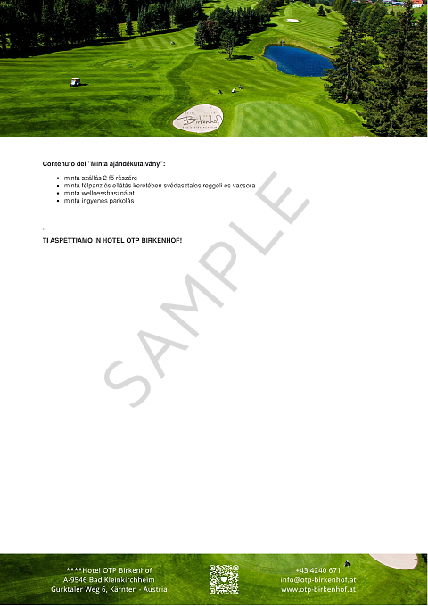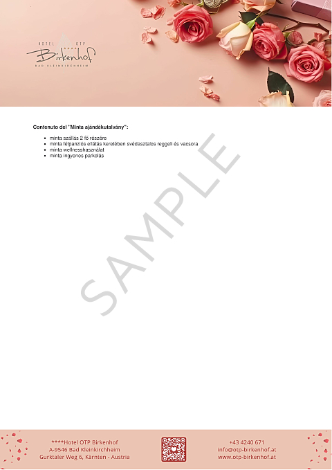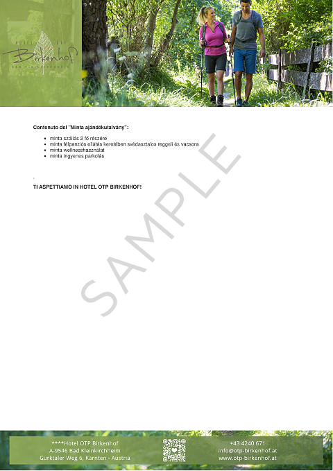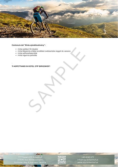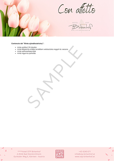 - Il nostro buono regalo può essere utilizzato liberamente per tutti i servizi dell'Hotel OTP Birkenhof****, in base al valore selezionato.
