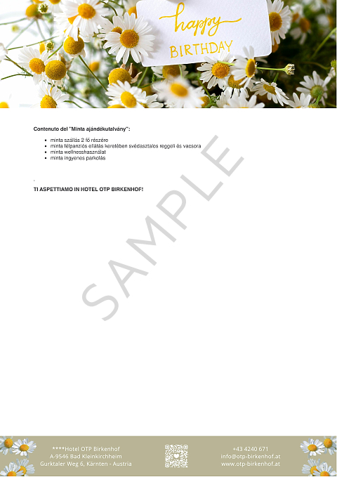 - Utilizzo gratuito e illimitato della Birkenhof SPA;
